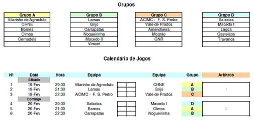Grupo D: Salselas; Macedo I; lagoa; Castelãos; Travanca